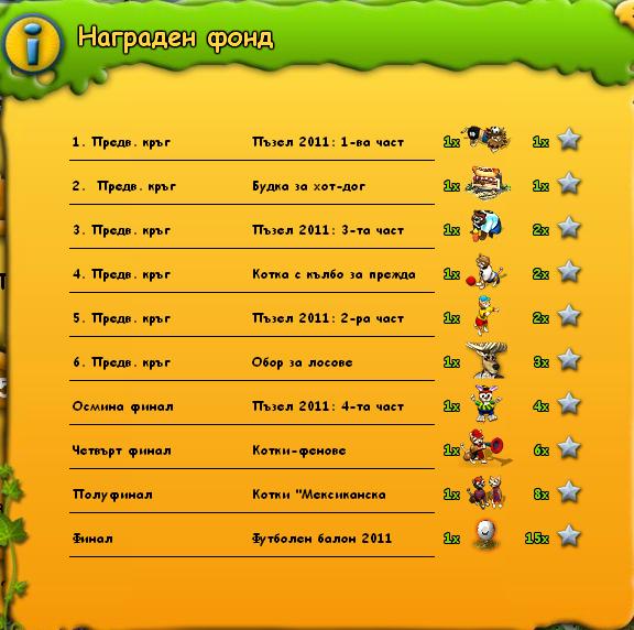 Награда: Пъзел 2011: 1-ва част (160 ТО / 16 ч.)